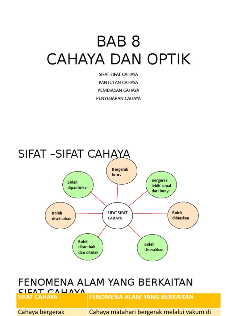 Sains Ting 1 Bab 8 Cahaya Dan Optik Nota Ringkas Youtube